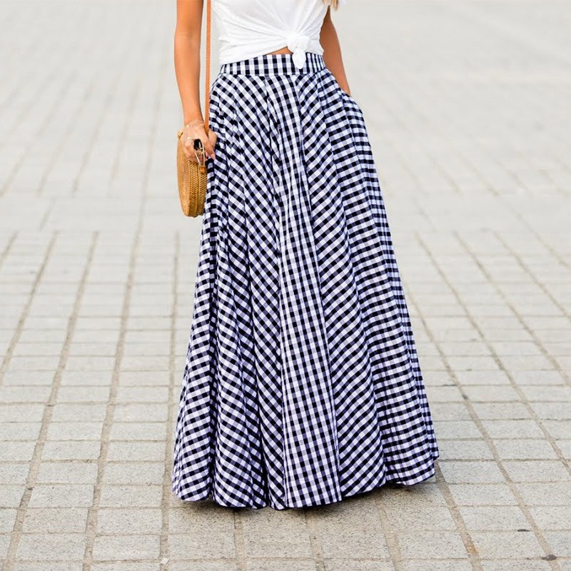 New Elegant All-match Elegant Plaid High Waist Large Skirt Dipped Skirt for Women